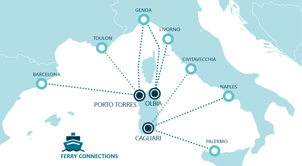 Among the companies operating ferries between mainland Europe and Sardinia are: